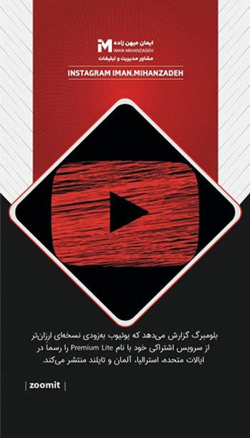 بلومبرگ گزارش می دهد که یوتیوب به زودی نسخه ای ارزان تر از سرویس اشتراکی خود با نام Premium را رسما در ایالات متحده، استرالیا، آلمان و تایلند منتشر می کند.
