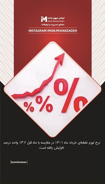 نرخ تورم نقطه ای خرداد ماه 1401 در مقایسه با ماه قبل 13.2 واحد درصد افزایش یافته است.