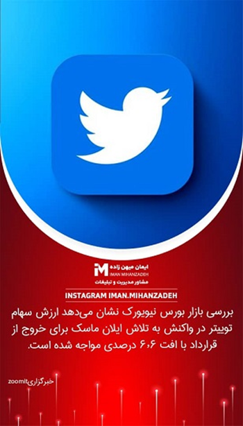 بررسی بازار بورس نیویورک نشان می دهد ارزش سهام توییتر در واکنش به تلاش ایلان ماسک برای خروج از قرارداد با افت 6.6 درصدی مواجه شده است.