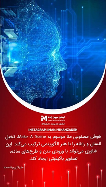 هوش مصنوعی متا موسوم به Make - A- Scene ، تخیل انسان و رایانه را با هنر الگوریتمی ترکیب می کند. این فناوری می تواند با ورودی متن و طرح حای ساده، تصاویر با کیفیتی ایجاد کند.